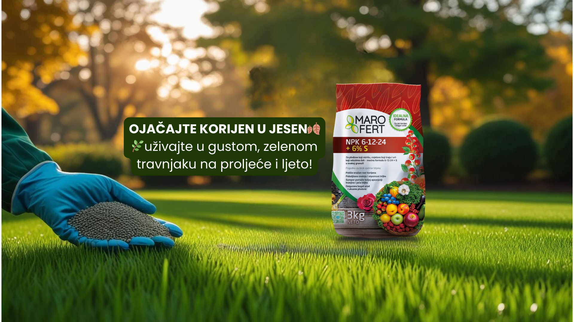 Otkrijte zašto je jesenska prihrana travnjaka ključna za zdrav i bujan travnjak te kako vam Marofert NPK 6-12-24+6%S mineralno gnojivo pomaže da trava izdrži zimu te bude gusta i zelena...